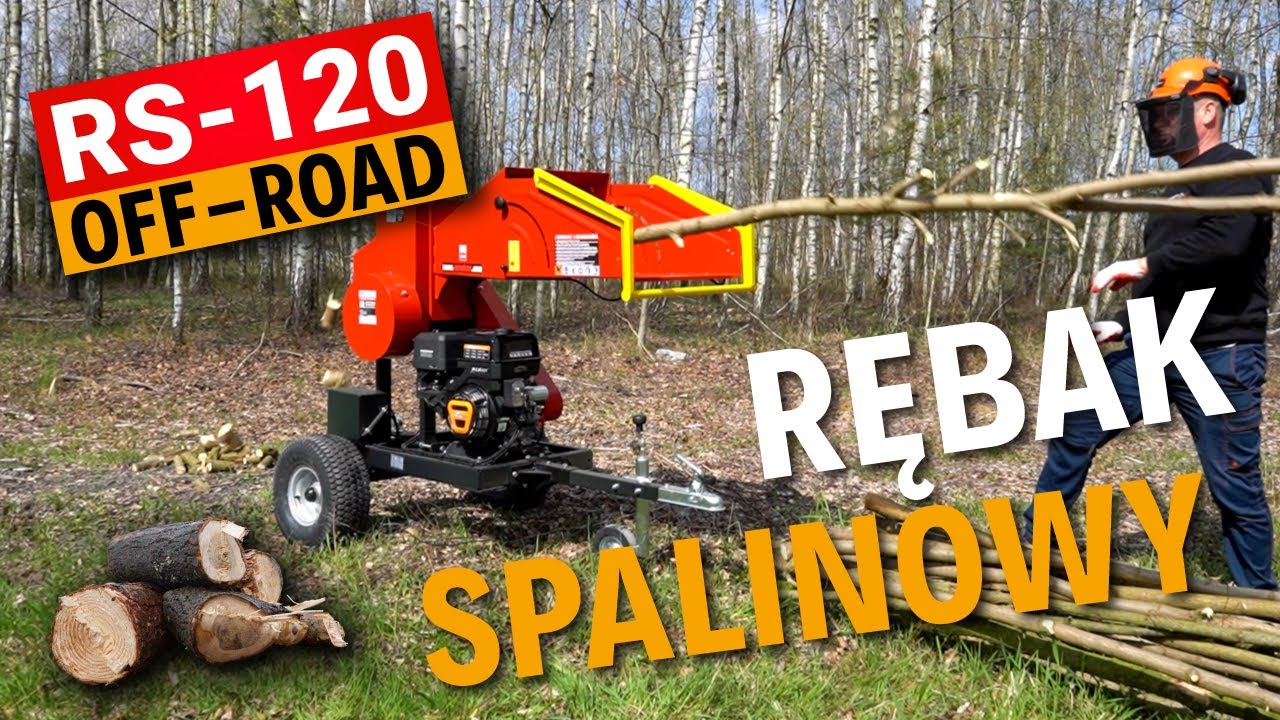 Mobilny rębak walcowy RS-120 OFF-ROAD STANDARD wyposażony jest w silnik czterosuwowy o mocy 15 KM. Rozdrabniacz przeznaczony jest do przerobu odpadów drewnianych oraz gałęzi o średnicy do 9 cm. Przerobione drewno jest wydajnym i ekologicznym opałem, idealnie nadającym się do spalania we wszystkich typach kotłów C.O.SPECYFIKACJA TECHNICZNA